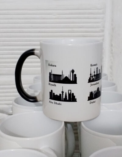 Mug Mágico, con el líquido caliente el diseño se muestra plasmado y al encontrarse en estado frío su color es negro.